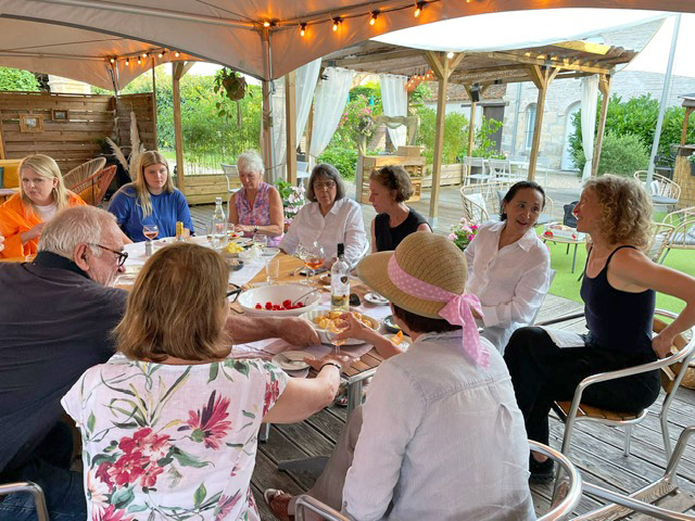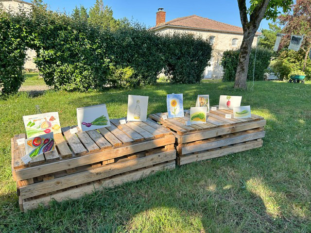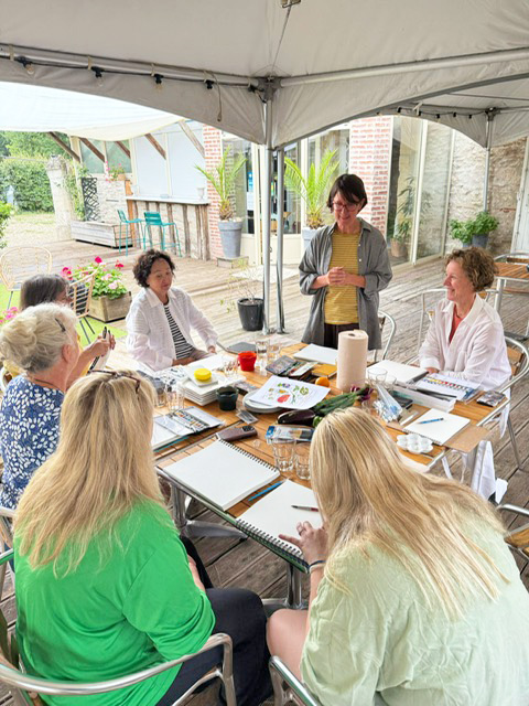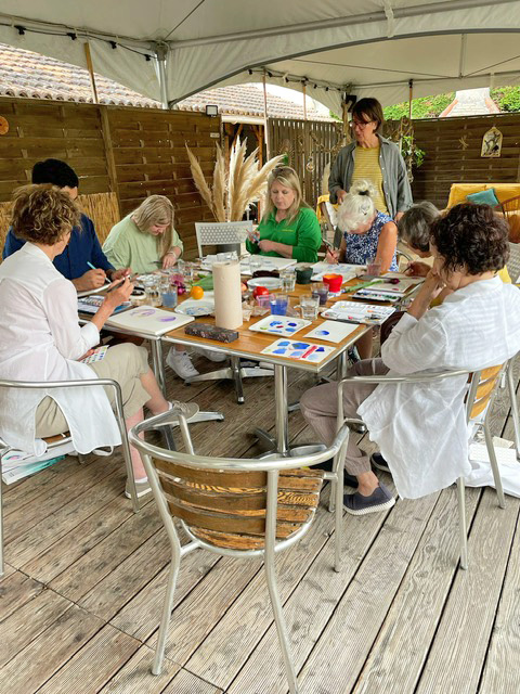 “Wow, what an exceptional experience! The “artist retreat” in the Bordeaux region of France, put together by Stephanie, was filled with landscapes, food, workshops, and local flavor. There is nothing like seeing a country through the eyes of someone who has not only grown up there but has a family farm to pull her home from time to time. I never knew eggplant could grow so tall, nor that I could actually capture one in a watercolor as a first time watercolorist! I brought home felted pelts I learned to make, photos of gardens overflowing with water lilies and narrow streets through hillside villages. Our art teachers were wonderful. We stayed in an historic farmstead…with a pool. The food was local and deliciously prepared. Stephanie is the consummate travel and tour guide. And, the wines of the region aren’t half bad either!” – From one of our 2025 guests